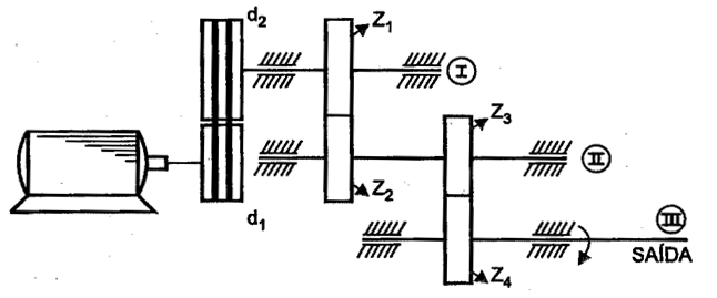 Sobre potência útil e dissipada do sistema Para a resolução do sistema de transmissão mecânica abaixo. Coloque na sequência o assunto e a equação referente.